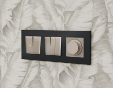 Выключатели двухклавишные с подсветкой Ambrella ALFA (Сталь матовый)