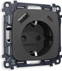 Розетки электрические с заземлением Ambrella OMEGA (Графит soft touch)