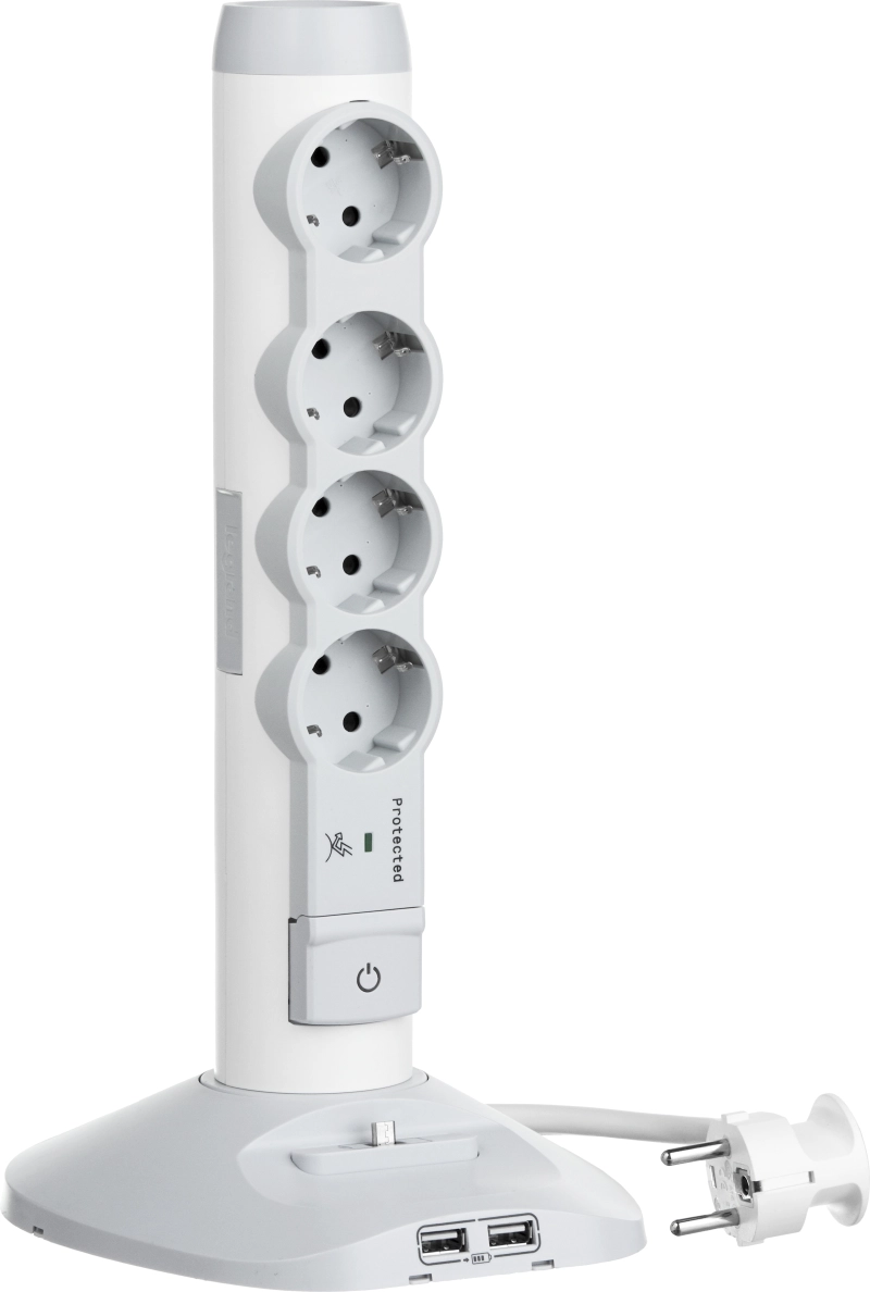 Защищенные разъемы с износоустойчивостью на 10000 операций, выключатель с индикатором. Расстояние между розетками наиболее оптимально, позволяет подключать трансформаторы, зарядные устройства и т.п. Поставляется с самофиксирующим хомутом для кабелей.