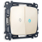 Двухклавишный выключатель Ambrella OMEGA с подсветкой (Бежевый глянец) 10000K (голубой свет)